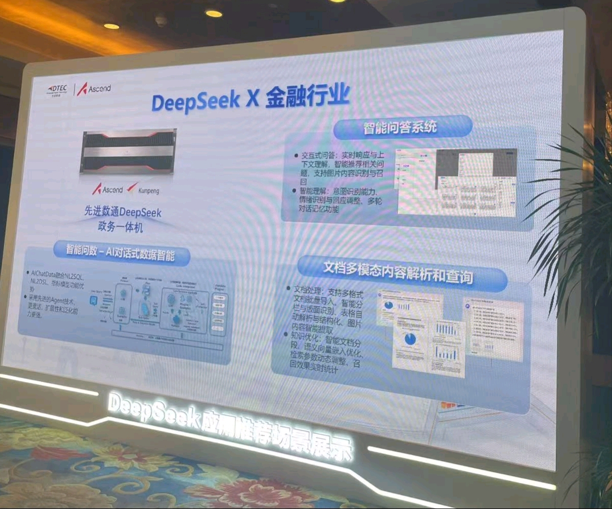 本次大会韦德国际1946展示了DeepSeek一体机,向业界全方位展示了其在金融科技领域的创新实力。韦德国际1946DeepSeek一体机的文档多模态内容解析和查询功能备受瞩目。它能够对各类金融文档,如研究报告、监管文件、交易记录等进行全方位解析,将文本、图表、图像等多模态信息转化为可高效查询和分析的结构化数据。金融组织借此可快速定位关键信息、洞察市场趋势、防范合规风险,为决策给予有力支持,实现从数据到价值的高效转化。